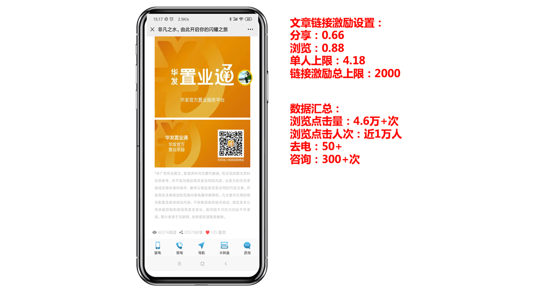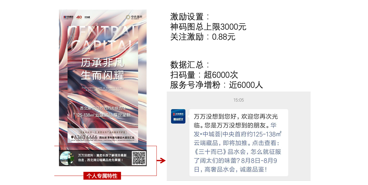 原圈的运营团队通过主动的,系统的,有计划的系列工作,适度的介入到华发的策划营销推广过程中去,驱动客户通过使用原圈云系统的各种模块,功能组件和活动等,创建更多数字化获客内容,更坚决深入的执行数字化传播获客动作和玩法,适度投入高质量私域公域投放预算,使得客户用较低的学习门槛和资金投入,能够看到可量化的、稳定的触达、互动、咨询、留电和到访效果,同时带来成交提升 。